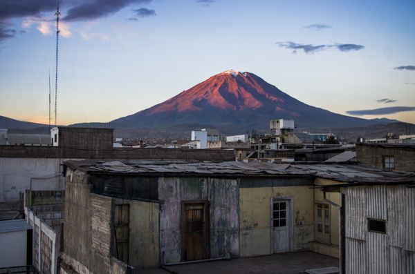 Misti volcano from the rooftops of Arequipa